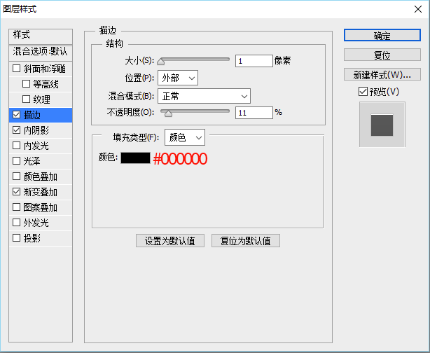 ,分别是描边、内阴影、渐变叠加。