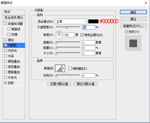 ,分别是内阴影、投影。