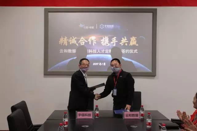 随后,双方签订了“云和数据.宇信科技人才定制培养”协议。签约仪式上,云和数据与宇信科技本着真诚、平等、诚信的原则,签订了“人才定制培养”合作协议。双方将在企业人才定制合作领域开展深层次的人才联合培养计划,促进双方持续、快速发展。