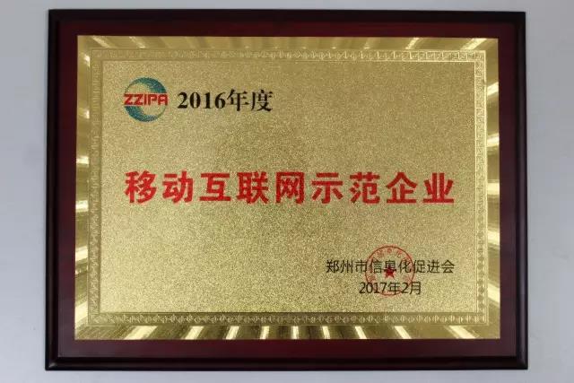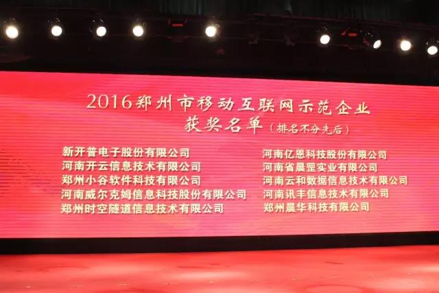 云和数据荣获“2016年度郑州市移动互联网示范企业”