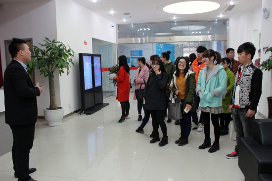同学们在刘主管的带领下参观了云和数据公司,并着重了解公司旗下职业教育品牌云和学院高端IT人才培养的丰硕成果及未来规划,耳濡目染的沉浸式体验了解,让大家对自己的未来更有信心。云和学院致力于打造国内最专业的IT教育综合服务提供商,已为社会输送数千名优秀IT人才。参观完公司办公环境和学员学习环境,工作人员也带领他们走上二楼三楼开阔眼界,参观云和数据的合作企业——阿里巴巴产业带和百度河南营销服务中心。优越的办公环境和浓厚的人文关怀,不禁让他们感叹:原来知名互联网公司是这样办公的,自己以后能在这样的公司上班该多好呢!